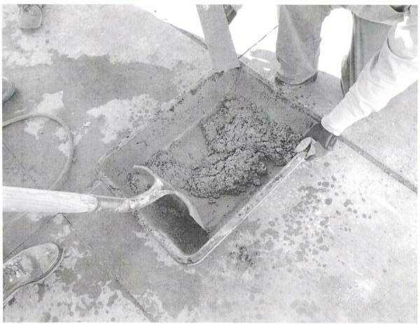 1. Clean up damaged area with brush and water. 2. Chip out the edges of the dent or cracks. 3. First apply Patching Concrete onto the edges. 4. Next, pour Patching Concrete into the damaged area. 5. Make sure that the layer of Patching Concrete is even with the edges of the damaged area. 6. Smooth bind the edges with a metal trowel. 7. Roughness of surface must be scheduled in 1 ½ hours after application by metal brush. 8. For repairing hydraulic structures, Patching Concrete with KF-K must be applied at a thickness of 1 ½” or 38 mm for highest impermeability.